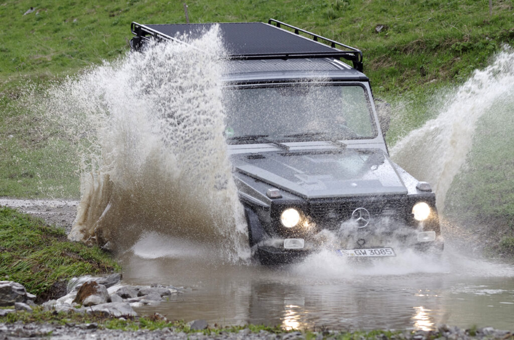 Tyngden gör de också olämplig på lös sand, annars är den en suverän terrängbil med följsam hjulupphängning och långslagig fjädring samt bra viktfördelning. Framvagnen har individuell hjulupphängning, precis som övriga G-klass, och bakaxeln är en De Dionbakaxel. En lösning som finns på bilar som Volvo 340 och den amerikanska mittmotorbilen Vector W8. De Dionaxeln kan beskrivas som något mitt emellan individuell hjulupphängning och stel bakaxel. Den ger bättre följsamhet i terrängen och bättre komfort på landsväg jämfört med den stela bakaxeln som övriga G-klass har.