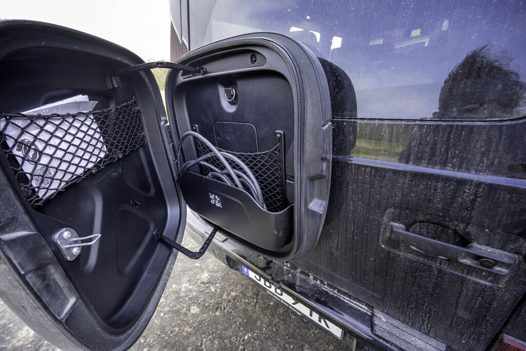 Om teknikerna fick ta ut svängarna så gäller det motsatta för Mercedes designers. Bilens karaktäristiska lådform har inte ändrats. När det gäller nyheter i designen så handlar det mest om strålkastare, led-signaturer och en fyndig förvaring av laddkablarna i en låda på bakdörren. En låda som ser ut som ett skydd för ett reservhjul monterat på bakdörren på klassiskt terrängbilsmanér. Den ikoniska robusta terrängbilslooken har man inte kompromissat med.