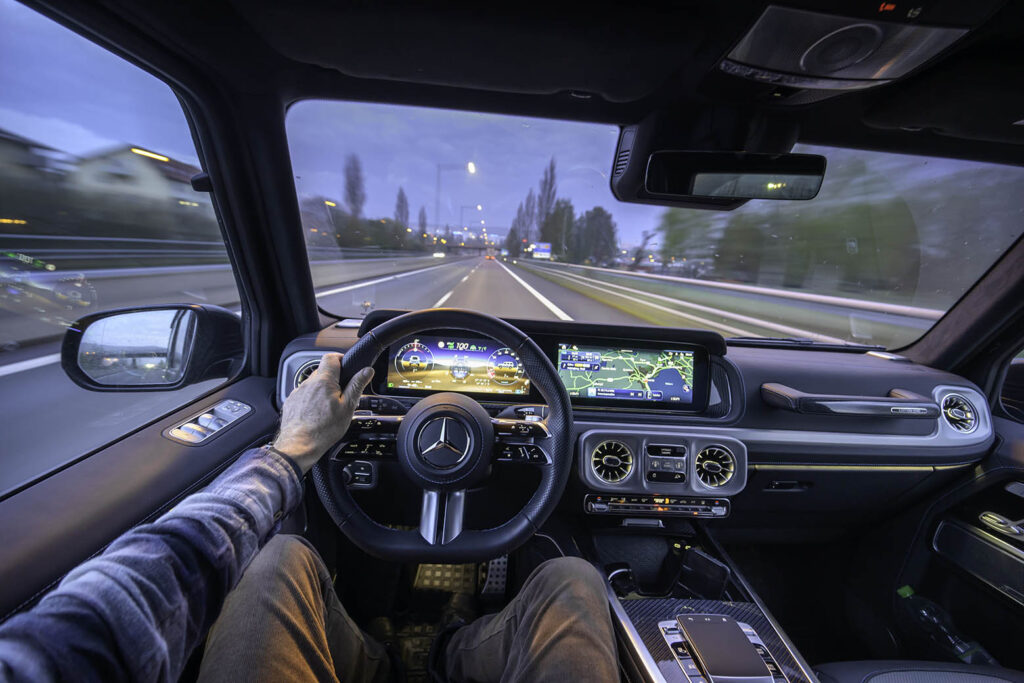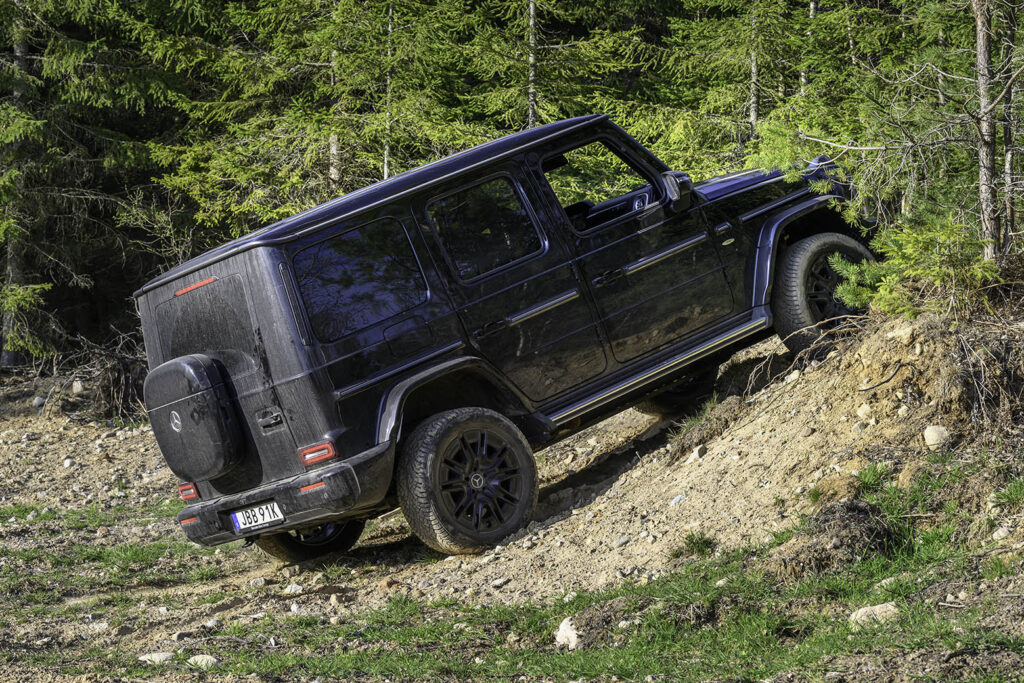 Vi har kört den på skogsvägar som till slut bara blev spår efter skogsmaskiner och den klättrade mellan hjulspåren och genom leran eller över stubbar och stenar med högre effektivitet och bättre komfort än andra G-klassbilar. Den smyger tyst och fint i stadstrafik där den varken bidrar med kväveoxid eller koldioxid. På landsväg förverkligar den bilden av ett landsvägslok. Suveräna stolar och en otrolig smidighet trots storleken gör bilen till en unik mix av terrängbil, vinterbil, stadsbil, långresebil och miljöbil.