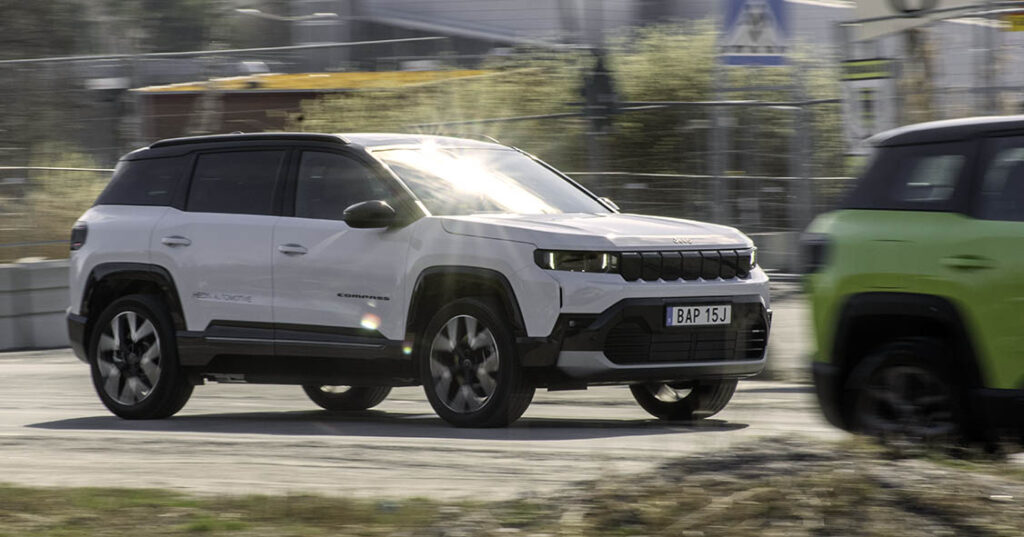 I Sverige säljer Jeep för närvarande två modeller, Avenger och Compass, båda finns som eldrivna och med flera andra drivlinor. Compass lanseras nu i en helt ny version med tre olika drivlinor, en mildhybrid med 1,2-liters bensinmotor på 136 hk och en elmotor på 29 hk, systemeffekt 145 hk, samt en sexstegad dubbelkopplingslåda och framhjulsdrivning. Den modellen börjar säljas nu. Samtidigt börjar även den framhjulsdrivna eljeepen att säljas med en motor på 213 hk och en uppgiven räckvidd på 50 mil. Den följs av en eljeep med 231 hk och uppgiven räckvidd på 65 mil. Slutligen kommer den verkliga eljeepen med fyrhjulsdrivning, 375 hk och 60 mil samt en laddhybrid med 1,6-liters bensinmotor på 150 hk, elmotor på 125 hk och en systemeffekt på 225 hk. Den kan, liksom eljeeparna laddas med 11 kW växelström.