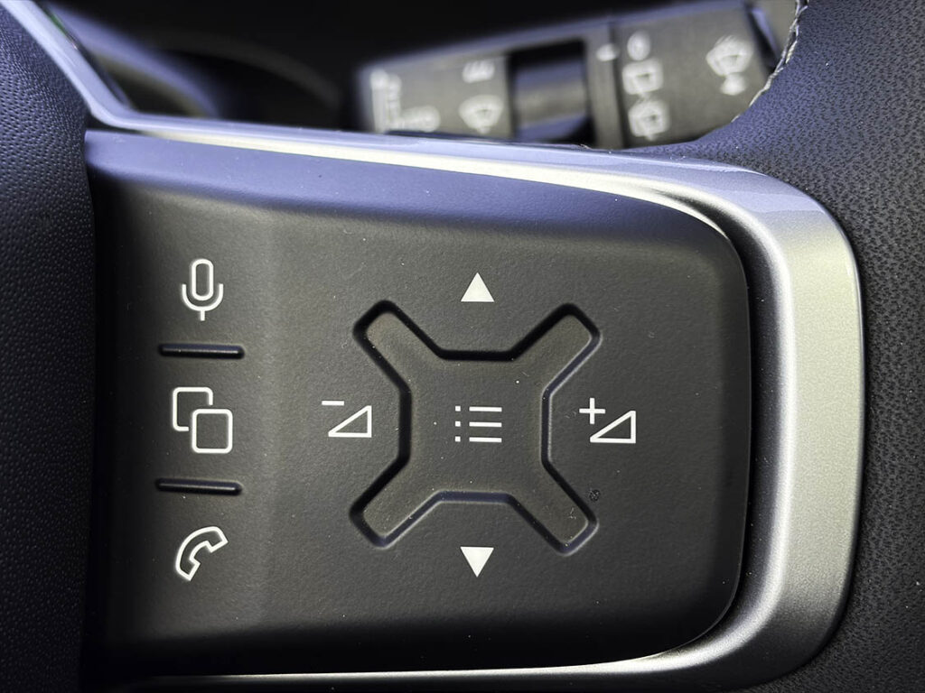 Autobroms, nödbroms, filbytesvarning m.m. : Flera förarassistanssystem (ADAS) är standard. Bland annat ingår autobroms, filbytesvarning, filhållare och ISA (Intelligent Speed Assist), farthållare, elvärmda framstolar och ratt.